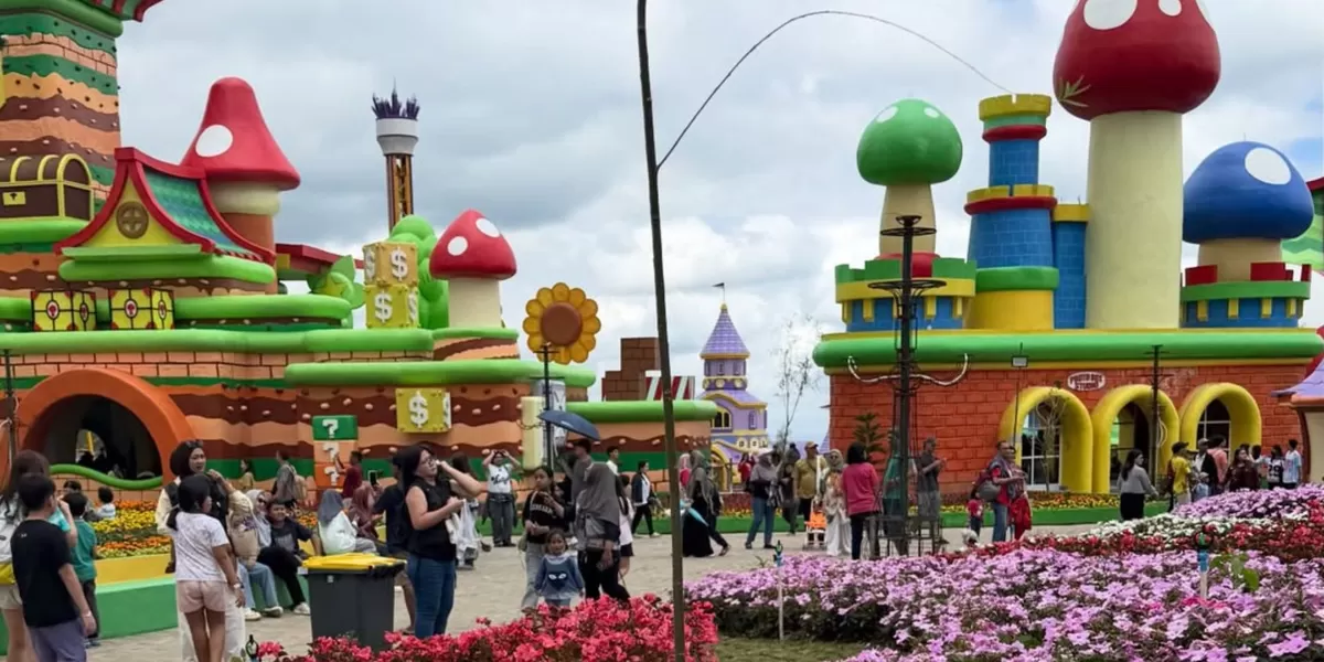 Wisata klasik yang tetap hits dengan taman bunga indah dan kolam renang.